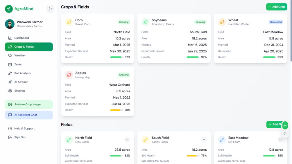 - ๐ฝ Crop & Field Management Dashboard with insights