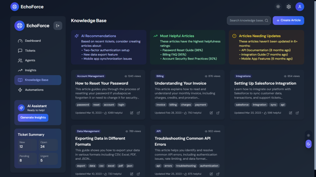 - ๐ง AI Insights across agents, tickets, and performance metrics