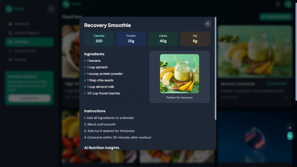 - Inline meal & workout suggestions
