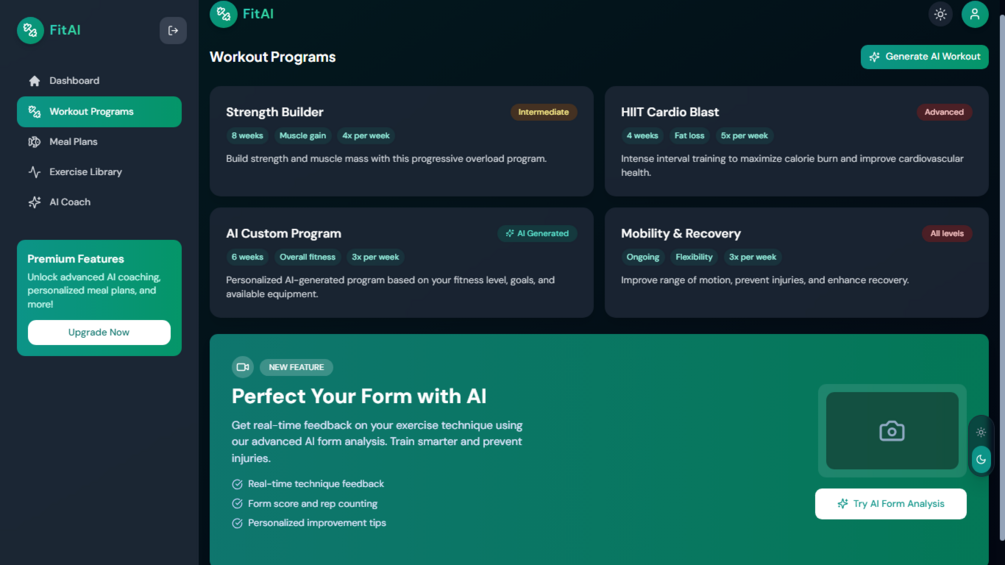 FitAI โ AI Fitness Coach UI Template