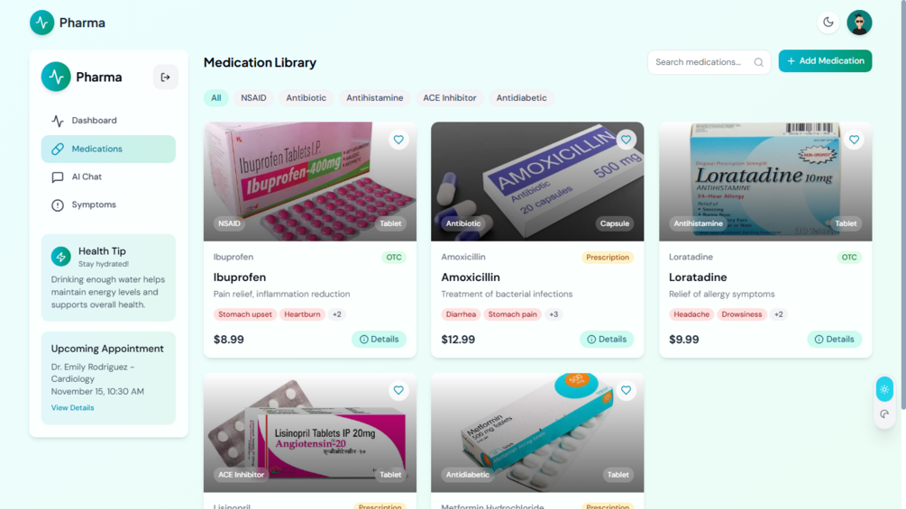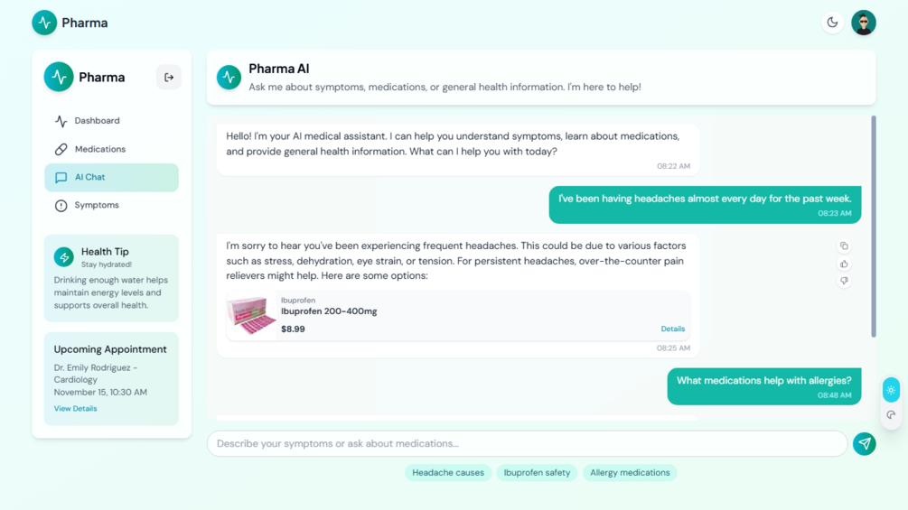 ๐ Pharma โ Personal AI Medical Assistant UI Template