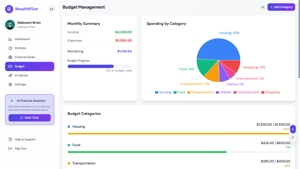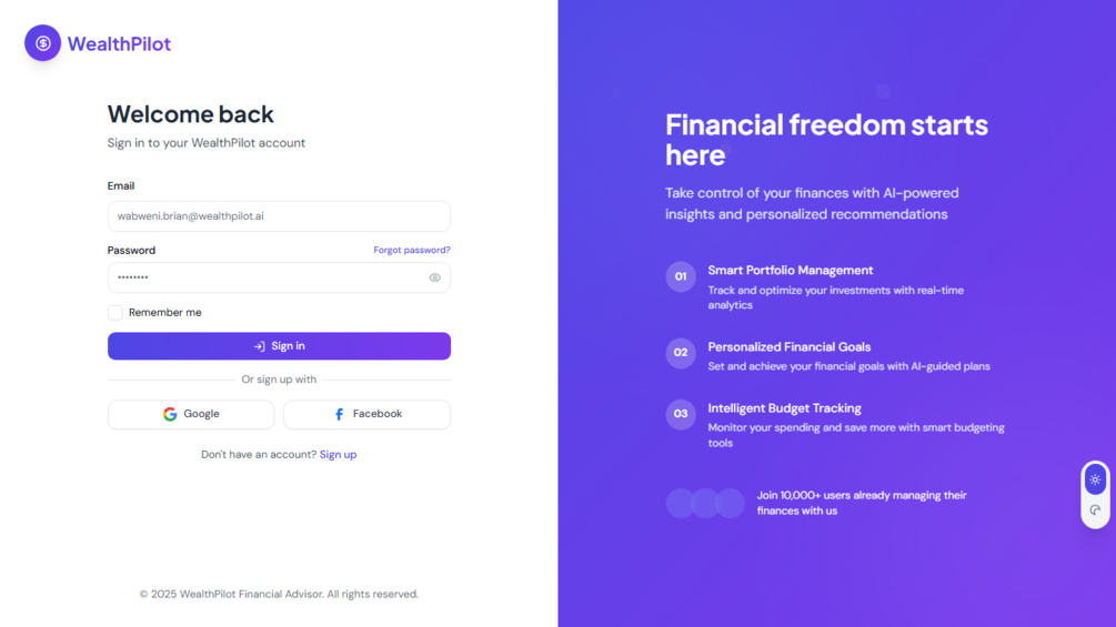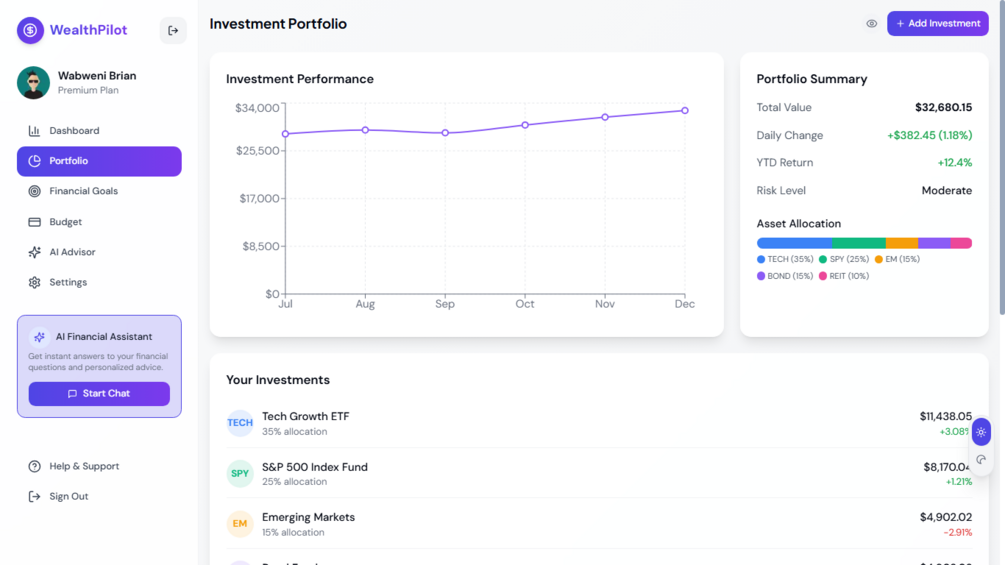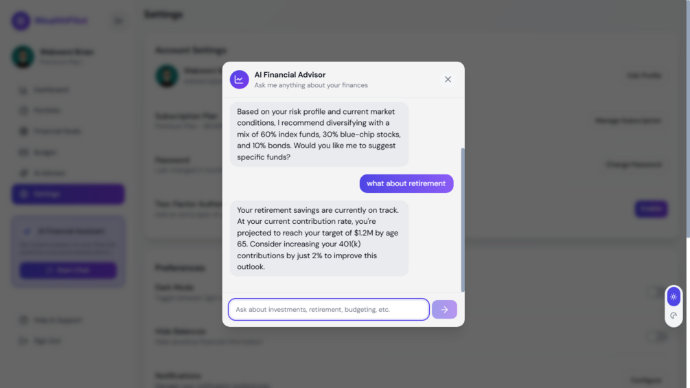 ๐ฐ WealthPilot โ AI Financial Assistant UI Template